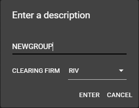 When adding a new Group, users will be prompted to specify a Clearing Firm. Only the permissioned Clearing Firm(s) will be displayed to the user. This ensures that for Rival One users clearing with multiple Clearing Firms, their Compliance limits are accessible only to the permissioned Risk Manager for the Clearing Firm and obscured from any other Risk Managers associated with other Clearing Firms.