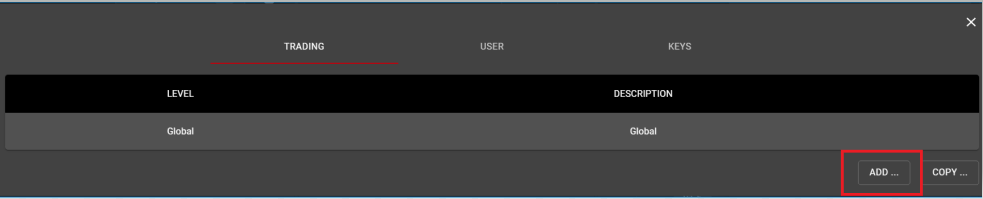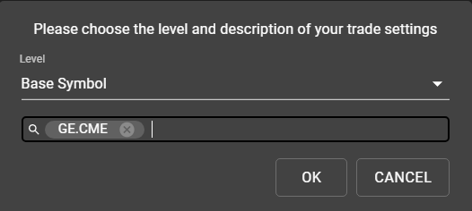 Trading Settings can be used to set user preferences for executions at several levels. When selecting Add... from the Global Settings menu, users will be presented first with a choice of which level to apply their preferences. Most commonly, preferences are set at the Exchange level or at the Base Symbol level, though if additional granularity is desired, Trading Settings may be applied at the Category, Product Group, or Symbol level.