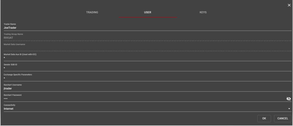 Note that the Trading Group Name and Market Data Username cannot be edited by the user and must be set by Rival Support