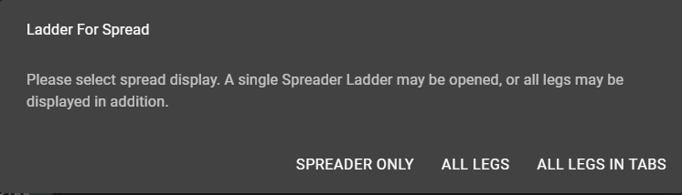 When adding a new Ladder for a Spreader instrument, users have the choice to display only the synthetic instrument, or to display each component leg of the Spreader in separate Ladders or tabs. When adding a new Ladder, users will be presented with the following display:
