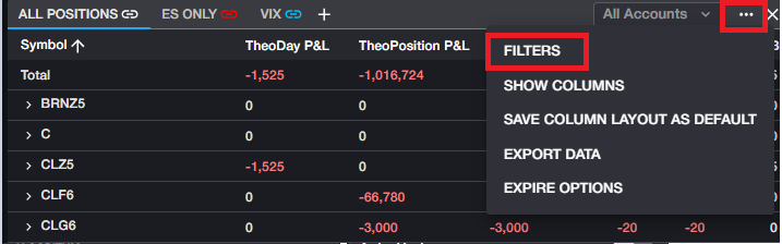 Filters can be set by clicking on the selection in the ellipsis menu of any component. Filters allow you to customize your view of any tab in the component, in order to view only the entries you want to see.